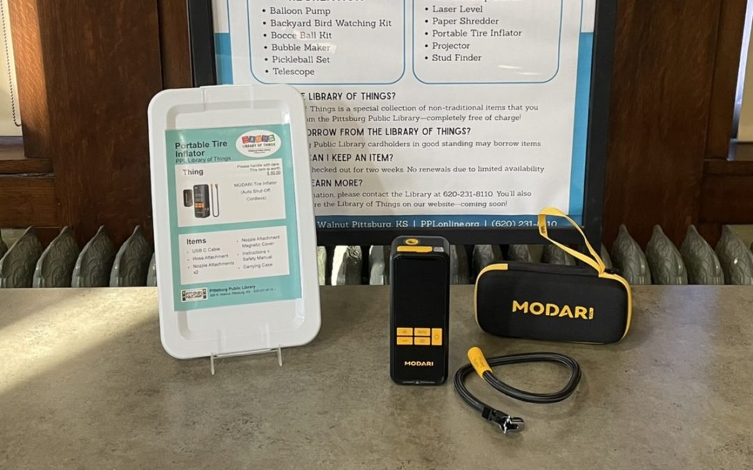 Portable Tire Inflator Nov 14, 2025 | Library of Things Portable Tire Inflator Device USB-C Cable Hose Attachment Nozzle Attachments x2 Nozzle Attachment Magnetic Cover Instructions Manual Carrying case Replacement cost: $60.00